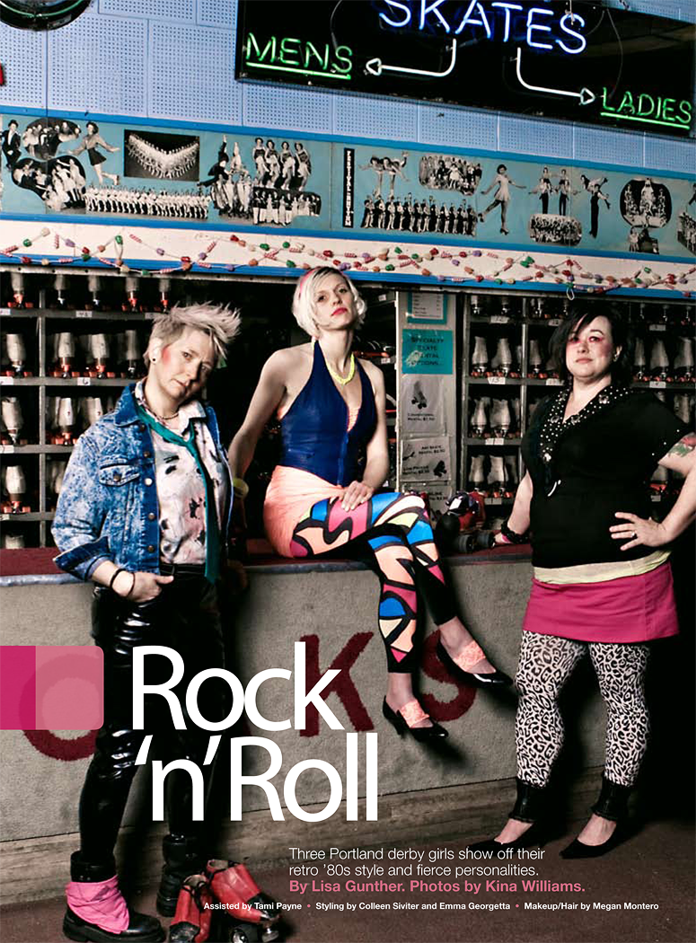 Brought to mainstream attention last year by the Drew Barrymore produced movie Whip It, roller derby has long been considered a female and lesbian-friendly sport. Most contemporary leagues are all-woman and are formed in an indie, do-it-yourself spirit. In the following pages, derby girls Becca Sullivan, Jett Butterworth and Kate Bentley show off their punk-inspired 80s style in a collection of photos by Kina Williams, taken at the Oaks Park Roller Skating Rink in Portland, Oregon—the oldest continuously operating roller rink in the United States.